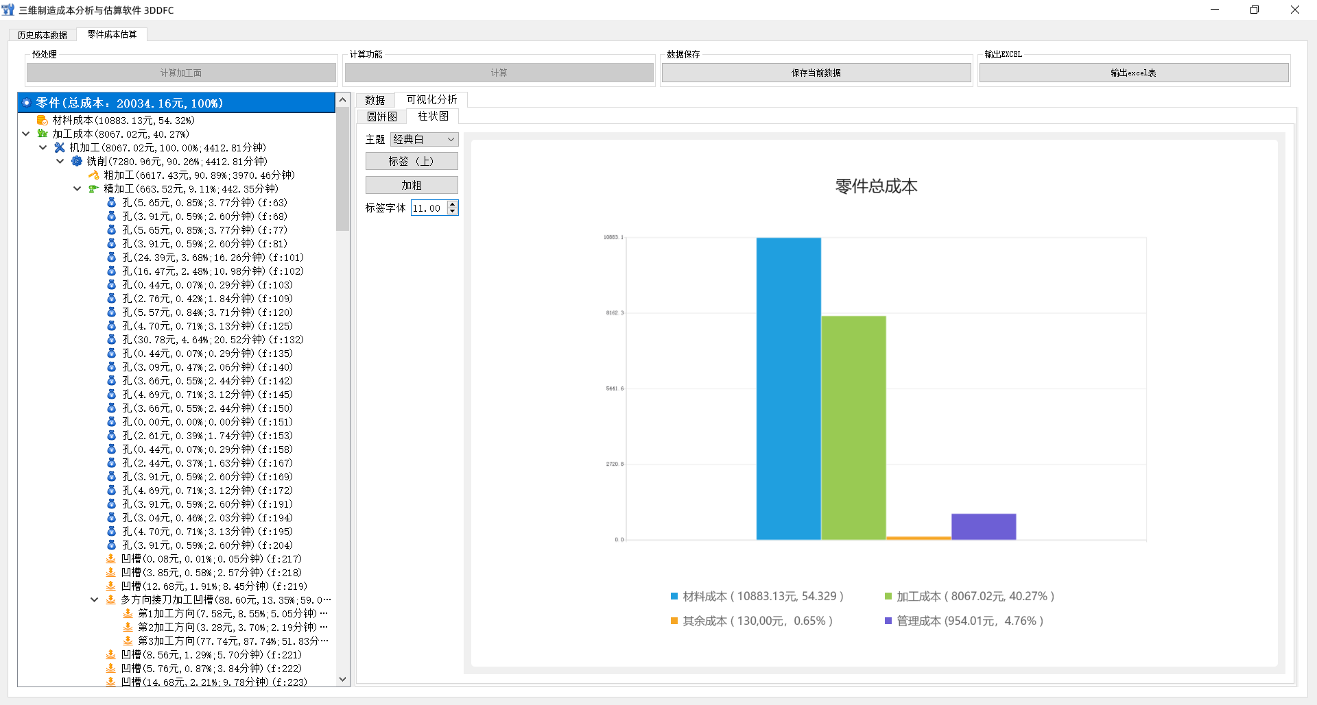 开目3DDFC 是一款基于 MBD 模型和工艺知识库的专业三维制造成本分析与估算软件,在不依赖详细工艺路线的情况下,根据零件几何信息和精度信息一键式完成成本估算。该软件充分融入“并行工程”的关键思想,并基于开目的三维设计模型特征识别技术,以及零件加工成本计算模型,能快速获得相对准确的加工成本。为面向成本的设计优化提供参考指引,也为企业对外产品报价或产品外协件采购价格提供量化依据,实现降本增效。
