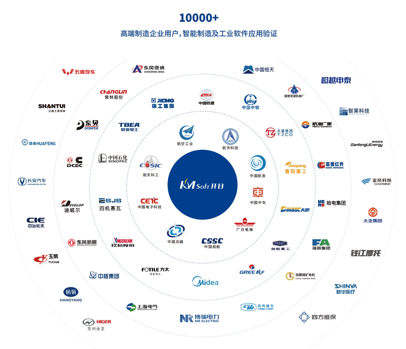 ◉ 在市场定位方面,开目采取了“聚焦”战略,将客户重心放在高端装备制造企业,通过深入研究行业龙头企业的需求,不断迭代、优化产品,打造出具有生命力的软件和解决方案。目前,英国正版365官方网站已积累了众多高端装备制造企业客户,包括航空航天、兵器船舶、高科技电子、汽车、工程机械等多个行业,高端客户市场占有率在国产工业软件中名列前茅。