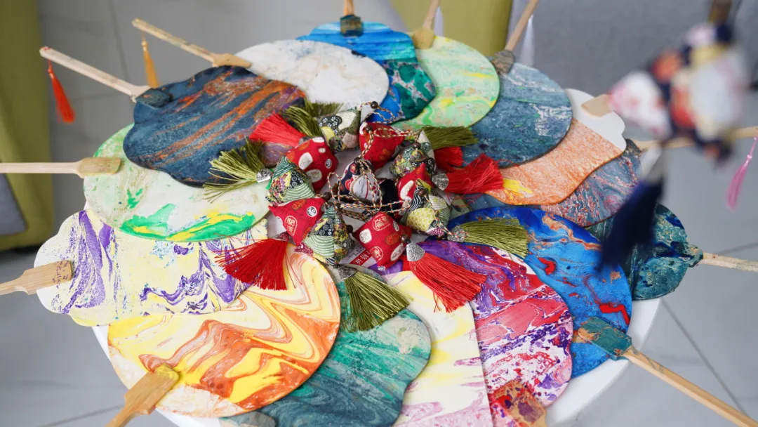 香囊巧手织情意,漆扇轻摇送清凉。一幅幅独具东方艺术美学的漆扇,满载着开目的奇思妙想;一只只散发淡淡香气的精致香囊,也寄托着对KMers的美好祝愿。