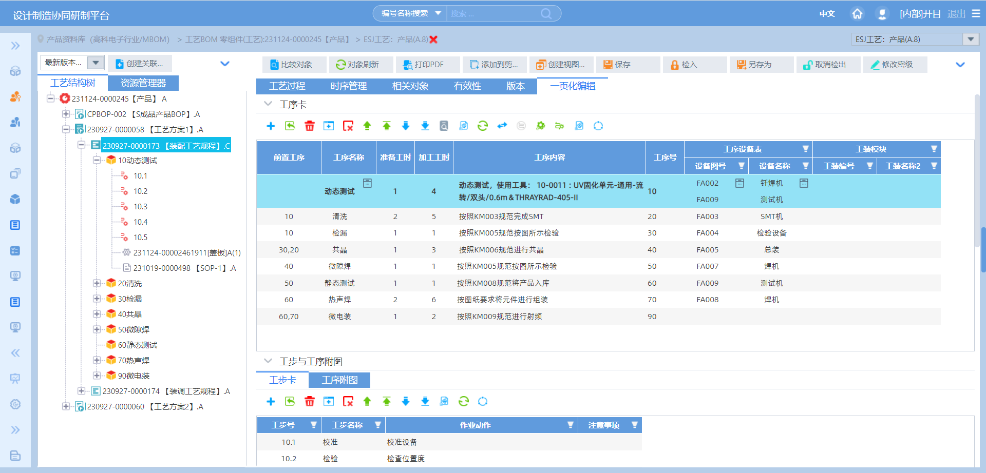 在单一界面完成过程卡、工序卡的编制以及工艺简图的上传;