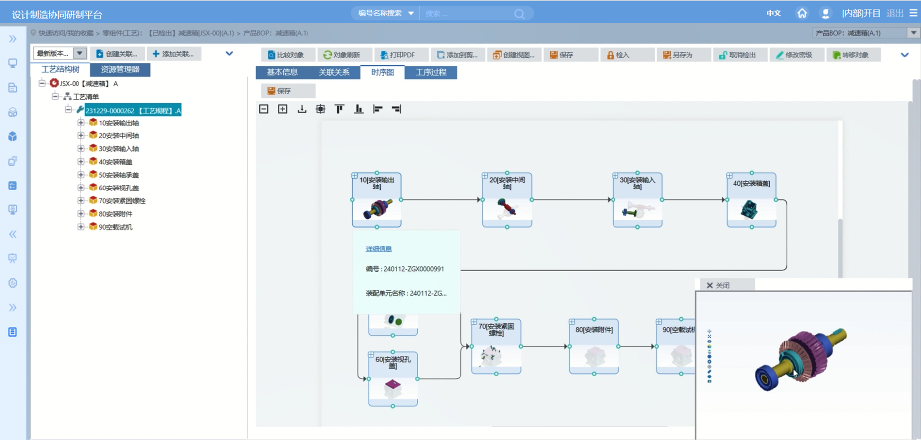 ◉支持结构化工艺编制时实时浏览产品模型、工序模型及工序简图;
