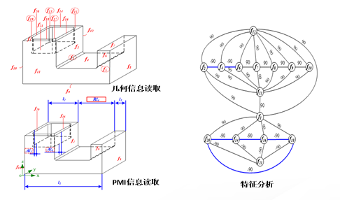 ◉ 基于MBD模型的特征识别:制造特征识别是数字化设计与数字化制造的桥梁。3DDFC融合开目近三十年的工艺技术积累,能自动识别各种复杂几何特征,包括平面、曲面、凹槽、键槽、螺纹孔等,快速将设计特征转化成制造特征,全面且详细。