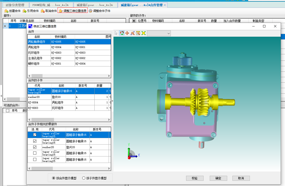合件的维护是PBOM调整的重要工作之一,开目eCOL PLM通过引用合件的三维模型以及合件的变更,可保障PBOM中结构的完整性和一致性。新版本PLM能够辅助企业规范合件库的管理,实现合件库的有效应用,并且提供批量的合件操作功能,如部件批量自动检索、合件引用、合件变更等,大幅提供工作效率。同时也支持部件下合件的三维模型设计,基于此模型来调整合件中具体的零件实例,以此支持基于具体位置的零件的合件生成,以及满足左右件等合件生成的要求。